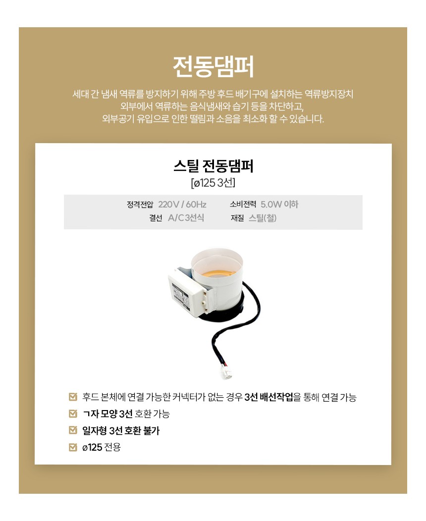 * 비규격 제품 구매시 전동댐퍼 연결할 경우 별도의 배선작업이 필요합니다.