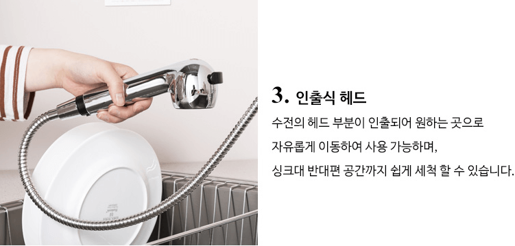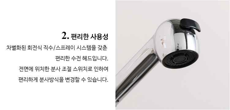 - 분사방식 : 직수 / 스프레이 겸용 (헤드 이동형)