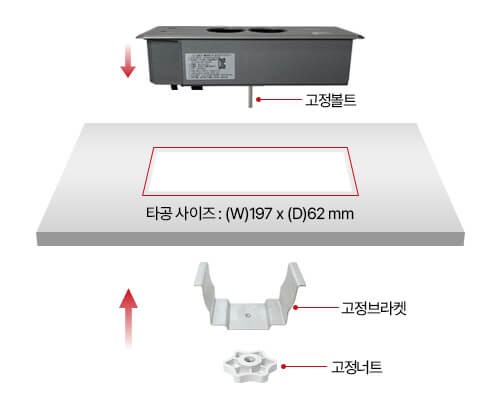 | 타공 사이즈 | W 197 X D 62mm (사각형) | ||||