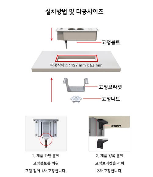| 타공 사이즈 | W 197 X D 62mm (사각형) | ||||