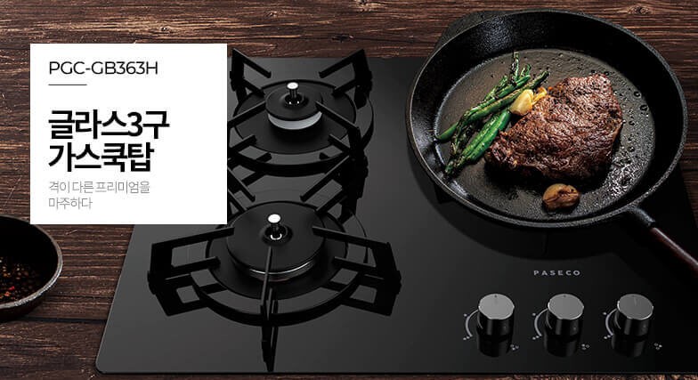 파세코(PASECO) 3구 가스 쿡탑 (PGC-B3600DG) * 구 모델명: PGC-GB363H |