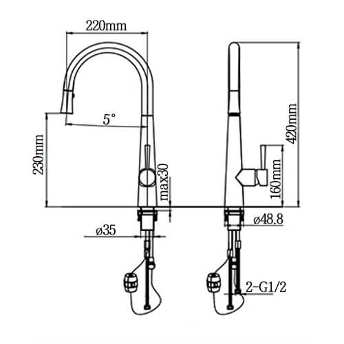 - 특징 : 직수/스프레이, 수전의 자바라를 당길 때 소음이 적고 자바라는 SUS가 아닌 우레탄 소재를 사용하여 부드럽고 튼튼합니다.