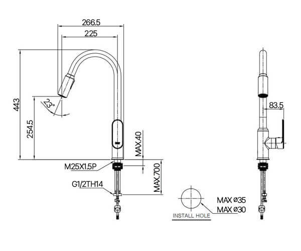 타공 사이즈 Ø30~35mm