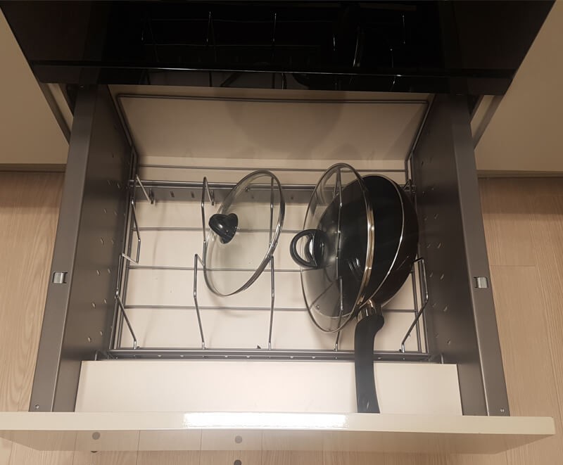 - 간격 조절이 가능한 후라이팬 디바이더 적용