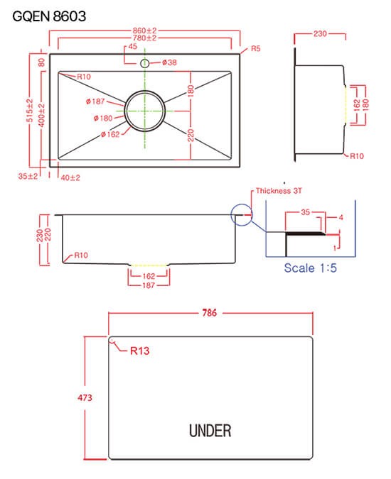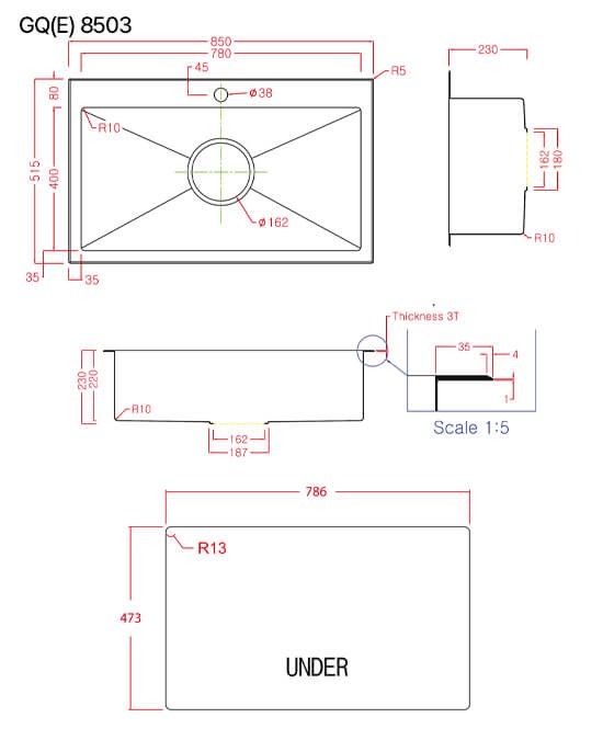 | 타공 사이즈 | W 796~830 X D 470~498 X R13mm (인셋) |
