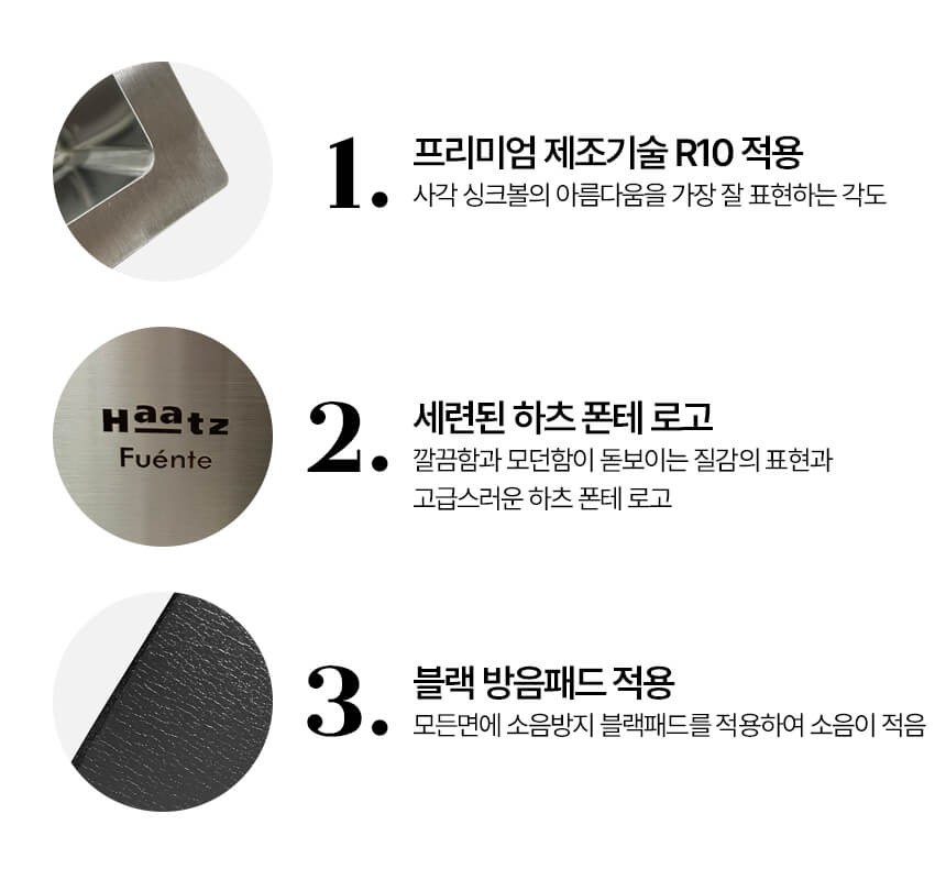 | 제품명 / 모델명 | 하츠(Haatz) 엠보 코팅 사각 싱크볼 (HZ-E8301SF) |