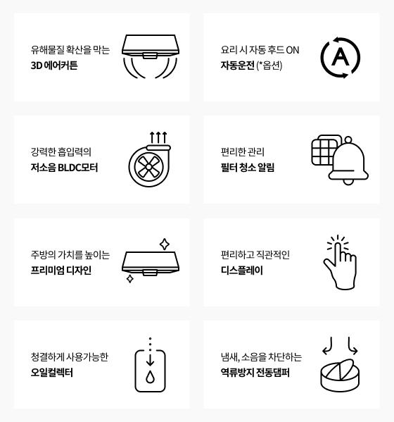 - 아일랜드형/슬라이드형/다운드래프트형 후드와 교체 설치 불가능