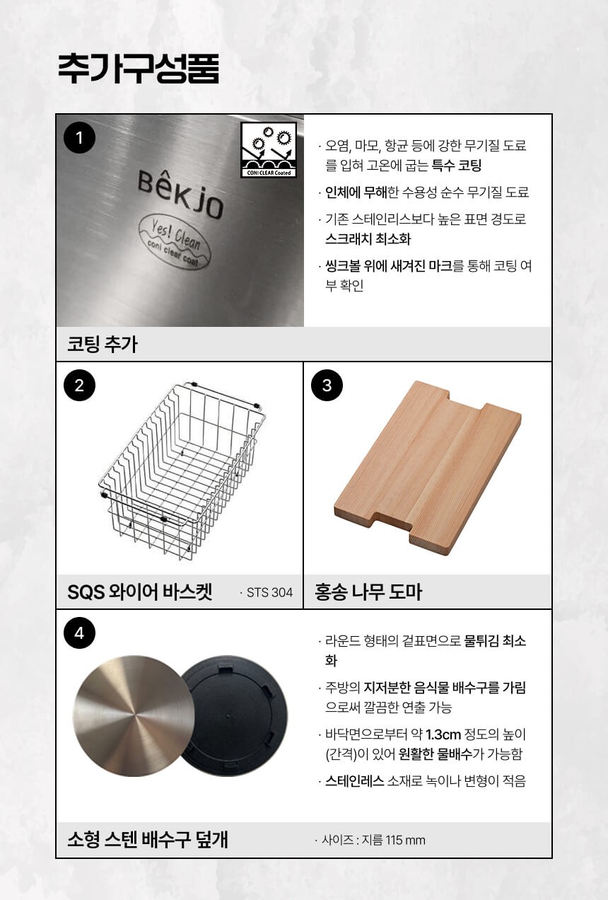 | 기본 구성품 | 씽크볼, 소소 배수구 |