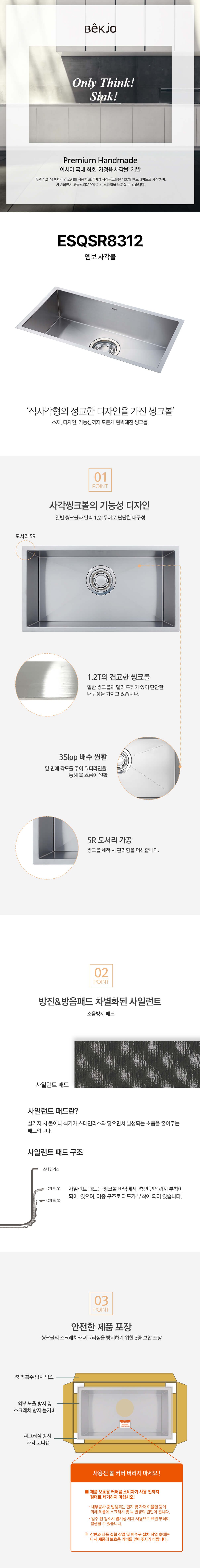 | 제품명 / 모델명 | 백조씽크(Baekjo Sink) 엠보 사각 싱크볼 (ESQSR8312) | ||